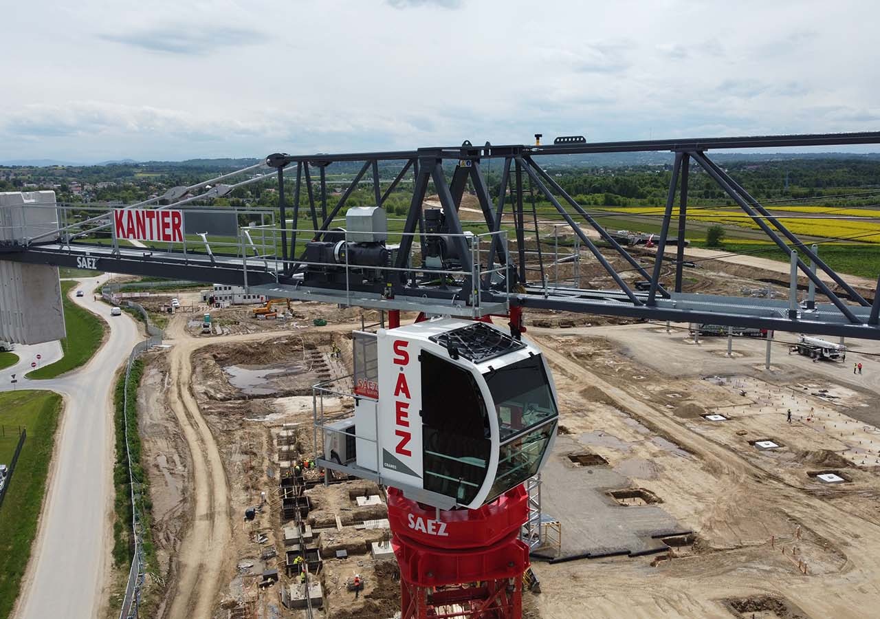 Budowa budynków biurowych przy ulicy Wadowickiej. Zaangażowane zostały trzy żurawie wieżowe: SAEZ TL55, SEZ TLS55.17 i SAEZ S65.