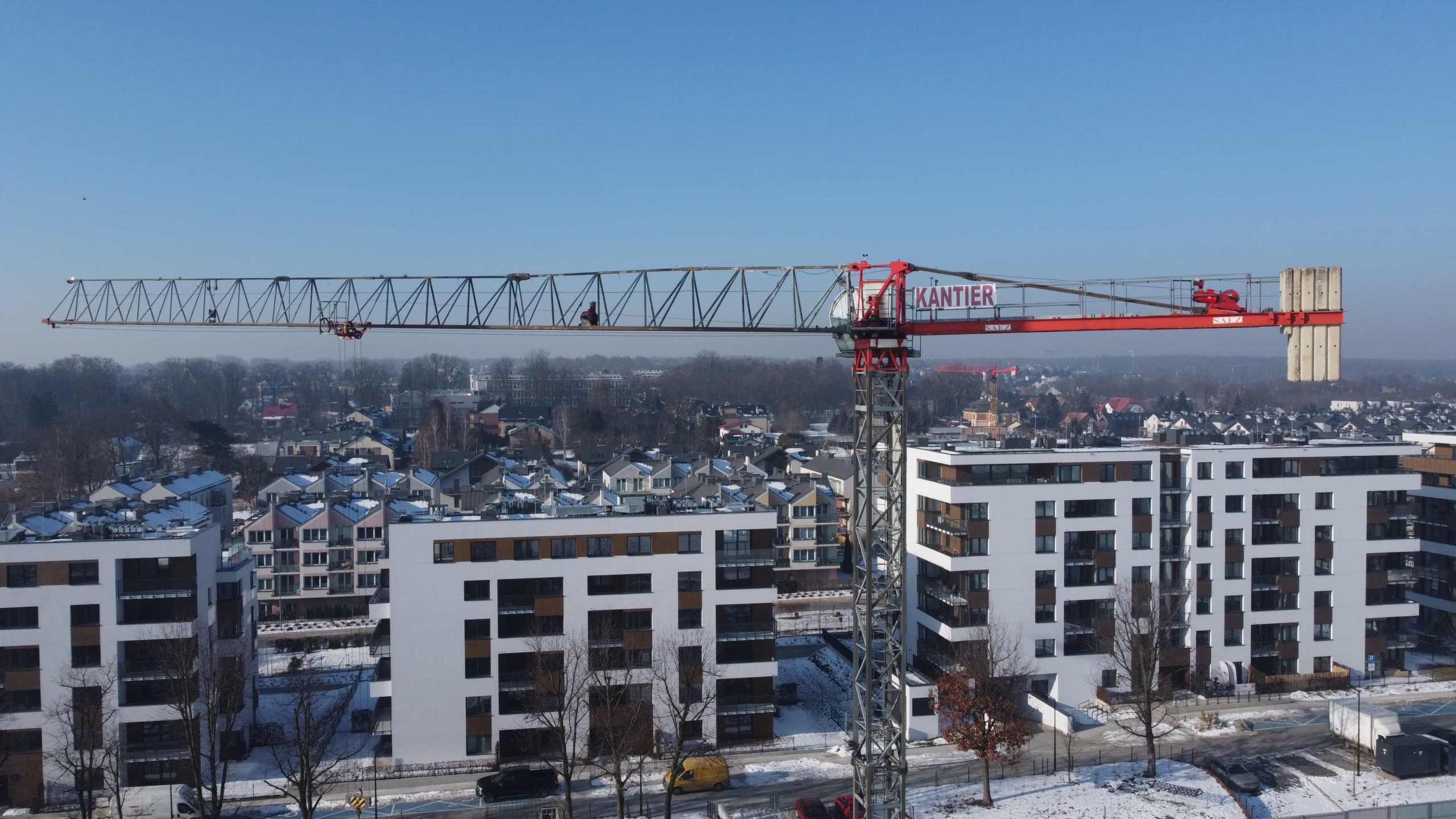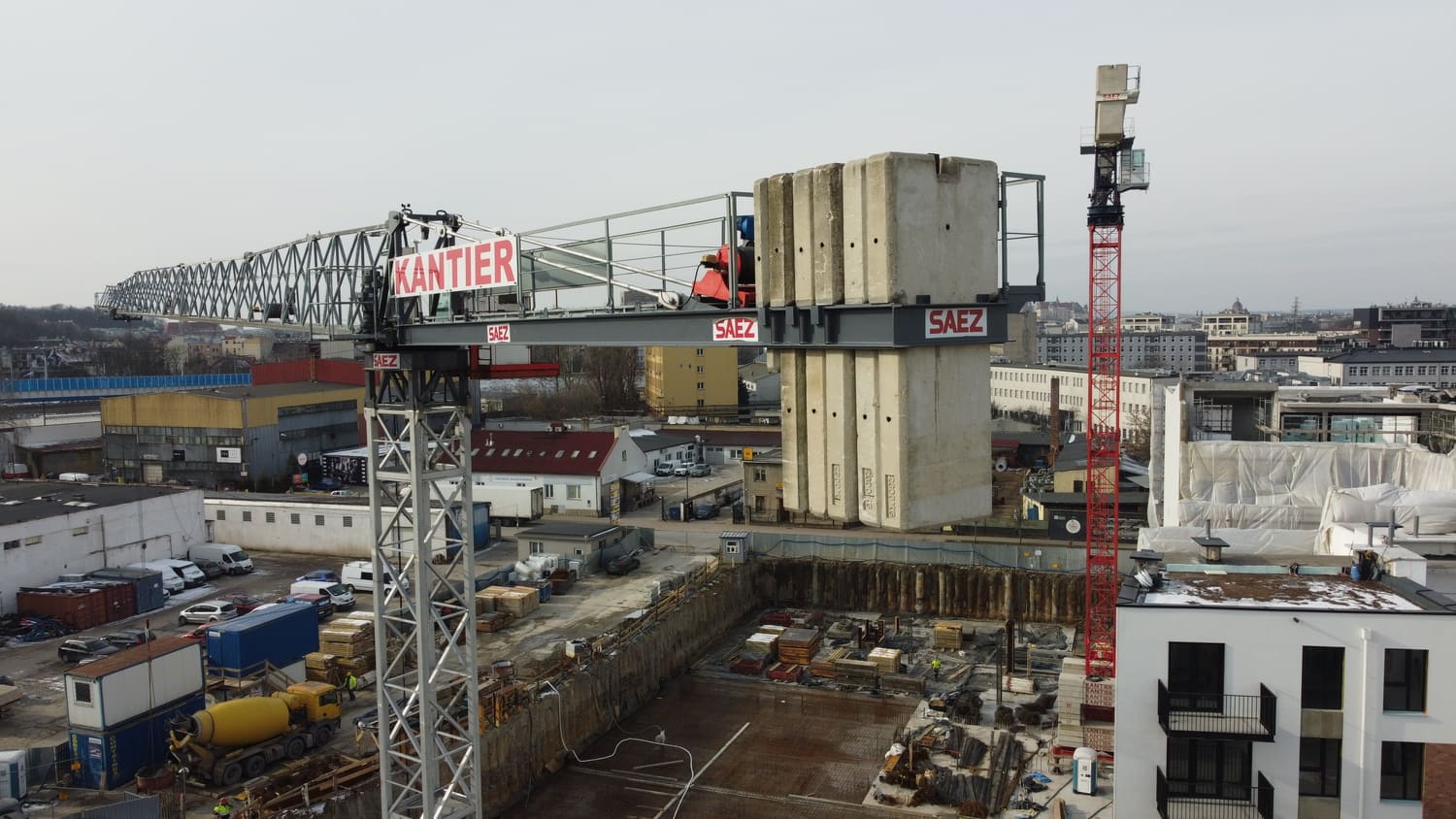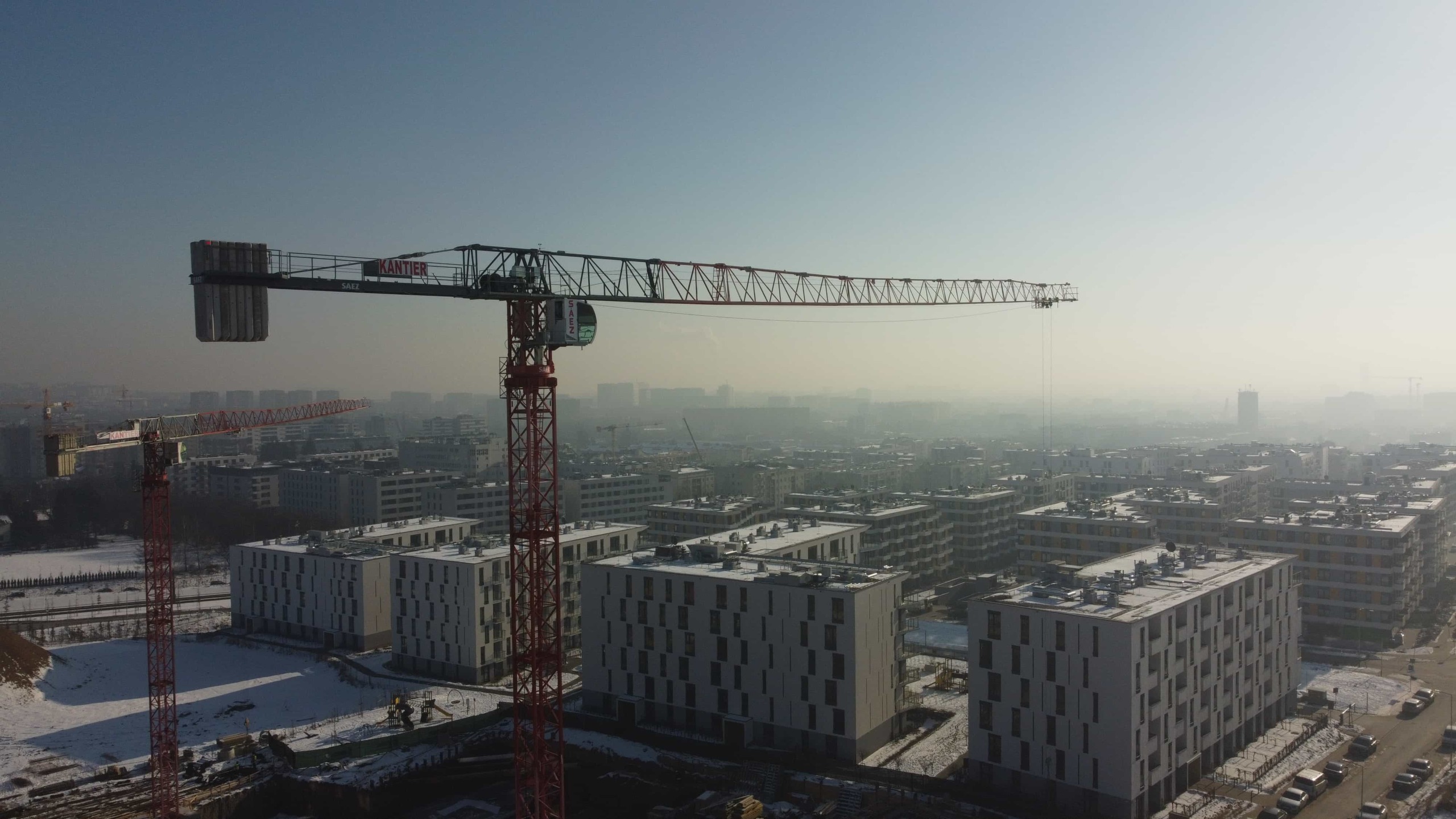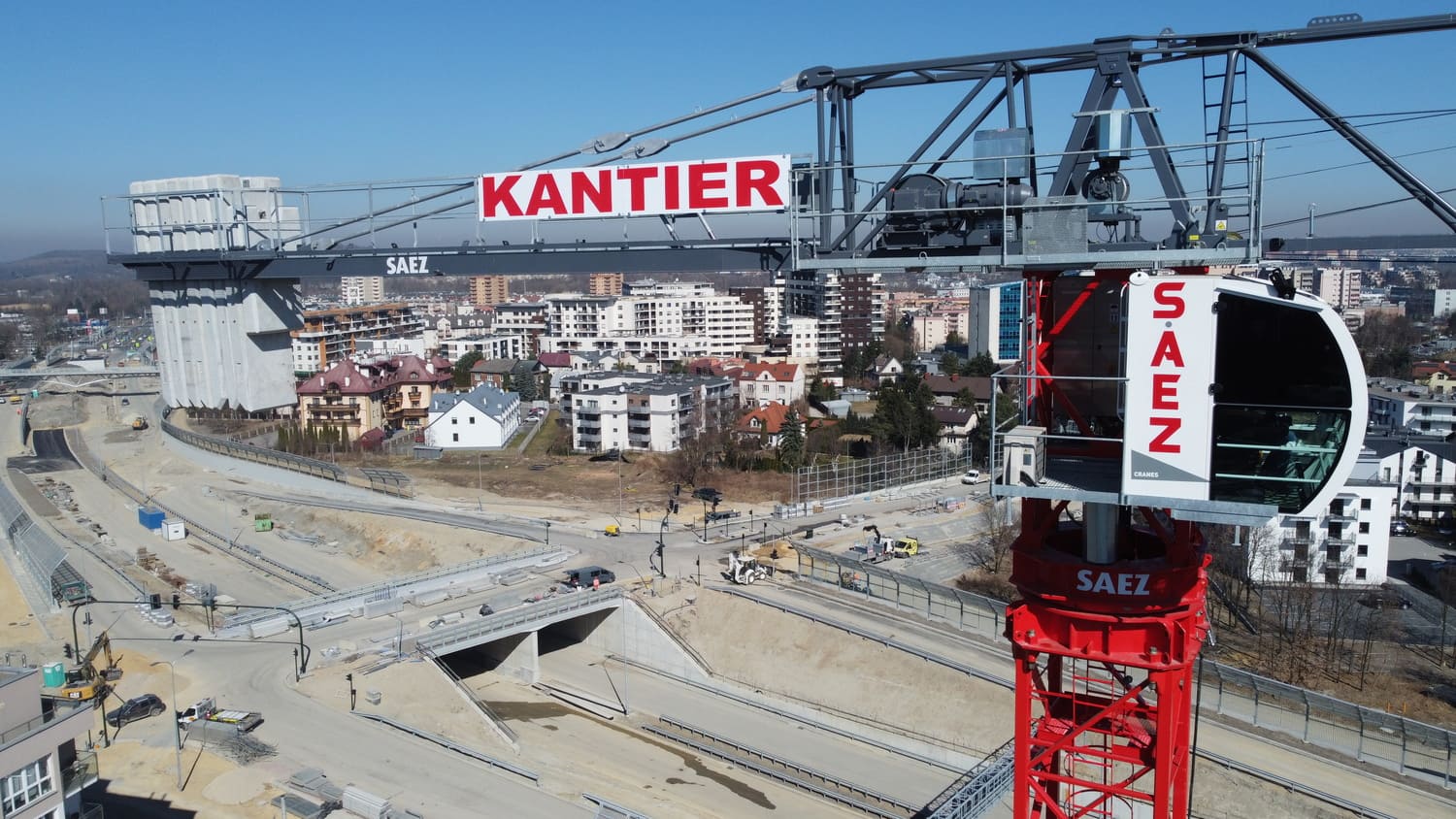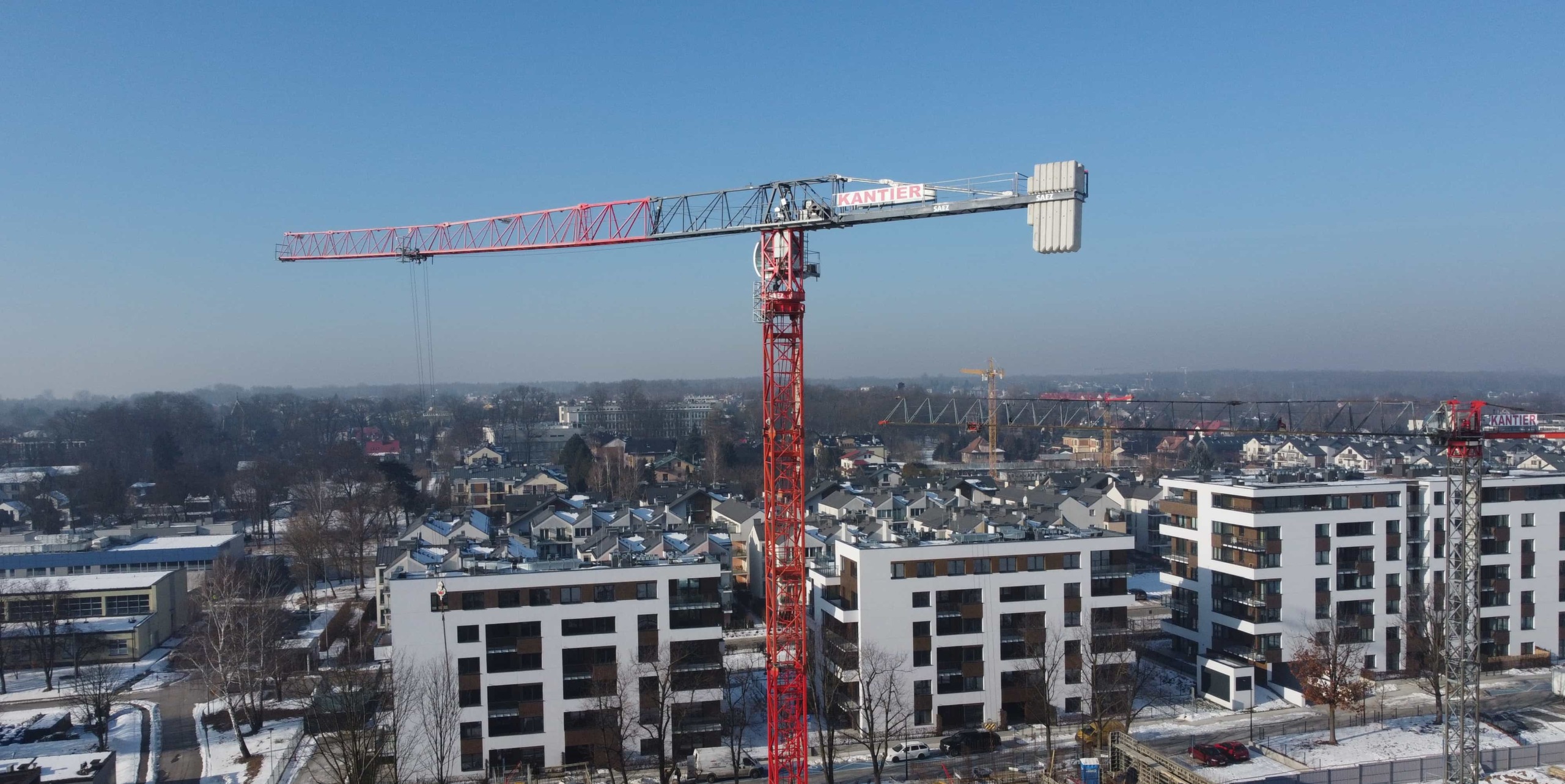 Budowa kompleksu budynków mieszkalnych przy ulicy Puszkarskiej. Zaangażowanych zostało pięć żurawi wieżowych: 3 x SAEZ TLS65B, SAEZ S60 i SAEZ S65.